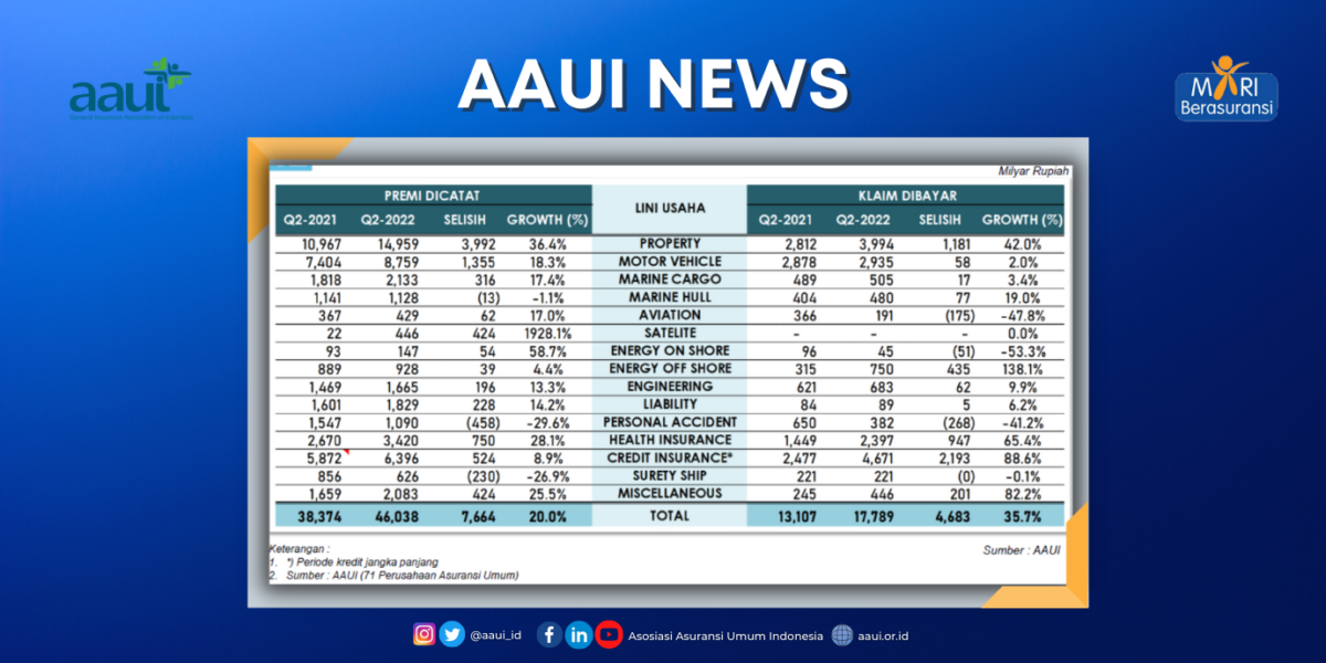 Read MoreAsosiasi Asuransi Umum Indonesia (AAUI) melaporkan pencatatan premi industri asuransi umum dan reasuransi pada periode triwulan III tahun 2022. Industri asuransi umum mencacatkan pertumbuhan positif sebesar 20,3%. Pendapatan pertumbuhan ini sejalan dengan pertumbuhan Ekonomi Indonesia triwulan III-2022 terhadap triwulan III-2021 tumbuh sebesar 5,72 % (y-on-y). Pendapatan Premi Asuransi Umum pada Triwulan III tahun 2022 tercatat […]
