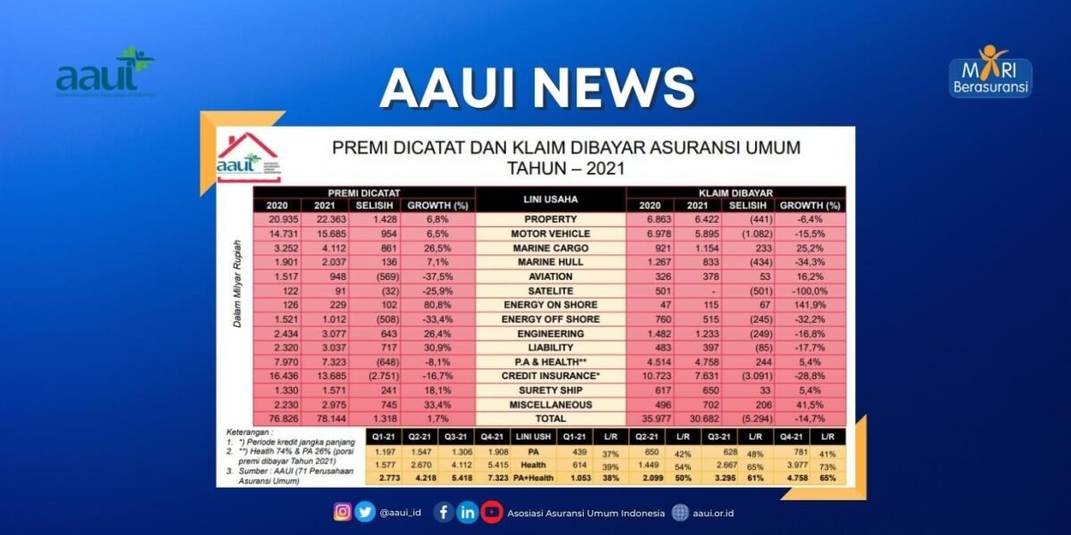 Read MoreJakarta, Kamis 17 Maret 2022. Perkembangan Industri Asuransi Umum di tahun 2021, umumnya membaik dari sisi premi, klaim maupun laba yang diperoleh. Asosiasi Asuransi Umum Indonesia mencatat pendapatan premi industri asuransi umum tahun 2021 sebesar 78 Trilyun Rupiah, tumbuh 1,7% dibandingkan dengan di tahun 2020 sebesar 76,8 Triliun Rupiah. Lini bisnis yang mencatatkan pertumbuhan negatif […]